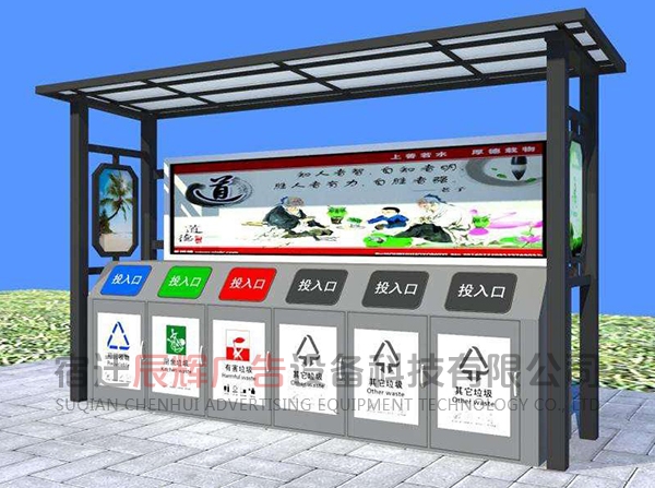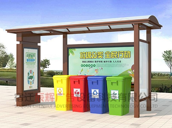 垃圾分類亭一般放在小區(qū)或者公共的地方集合垃圾之用。同樣的材料也可制成配電房、報亭、崗?fù)ぁ⒕皡^(qū)休息室等。宿遷辰輝廣告設(shè)備科技有限公司,我們的產(chǎn)品豐富多元化,應(yīng)用場景廣泛,也可以根據(jù)客戶的需要來圖定做。